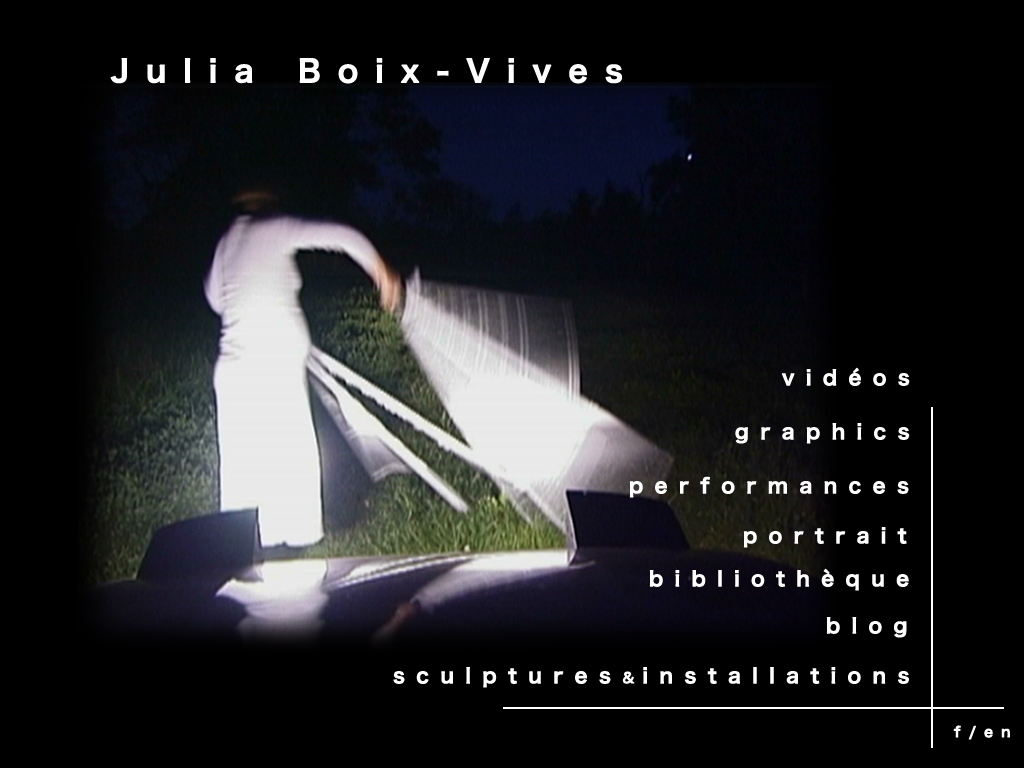 Julia Boix-Vives studeerde performance en beeldhouwen aan de Beaux-Arts te Grenoble (Frankrijk) en vervolgens Kunstacademie in Düsseldorf (Duitsland). Zij is de belangrijkste personage in haar eigen video’s waarin ze haar lichaam, gebaren en uitdrukkingen gebruikt als levend basismateriaal.